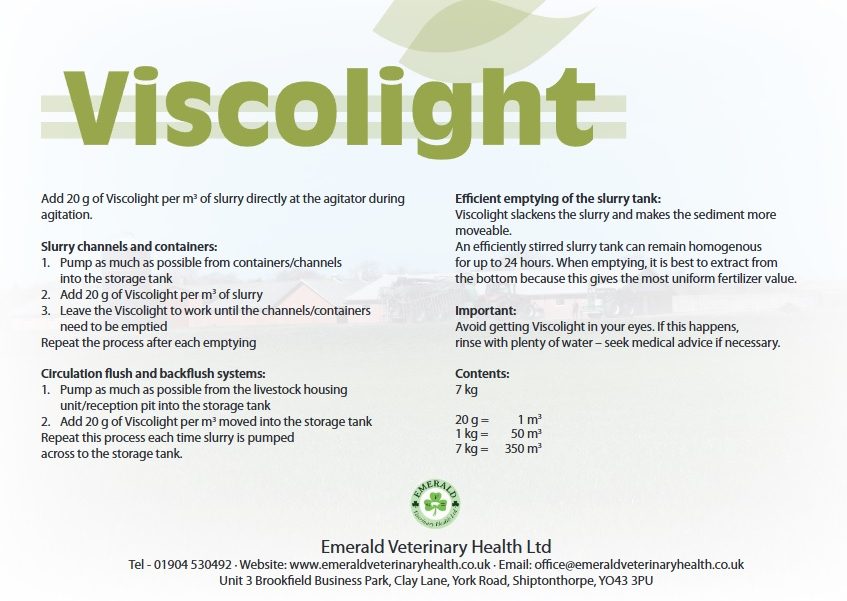 We are delighted to announce that EVH are now the main UK distributor for Danish slurry conditioner Viscolight. This comes in 7kg buckets or pallets of 55.