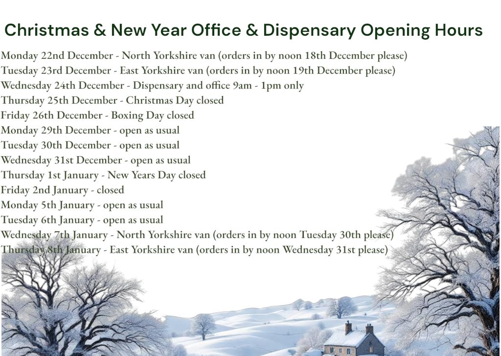 Please see our office/dispensary opening hours for the festive period